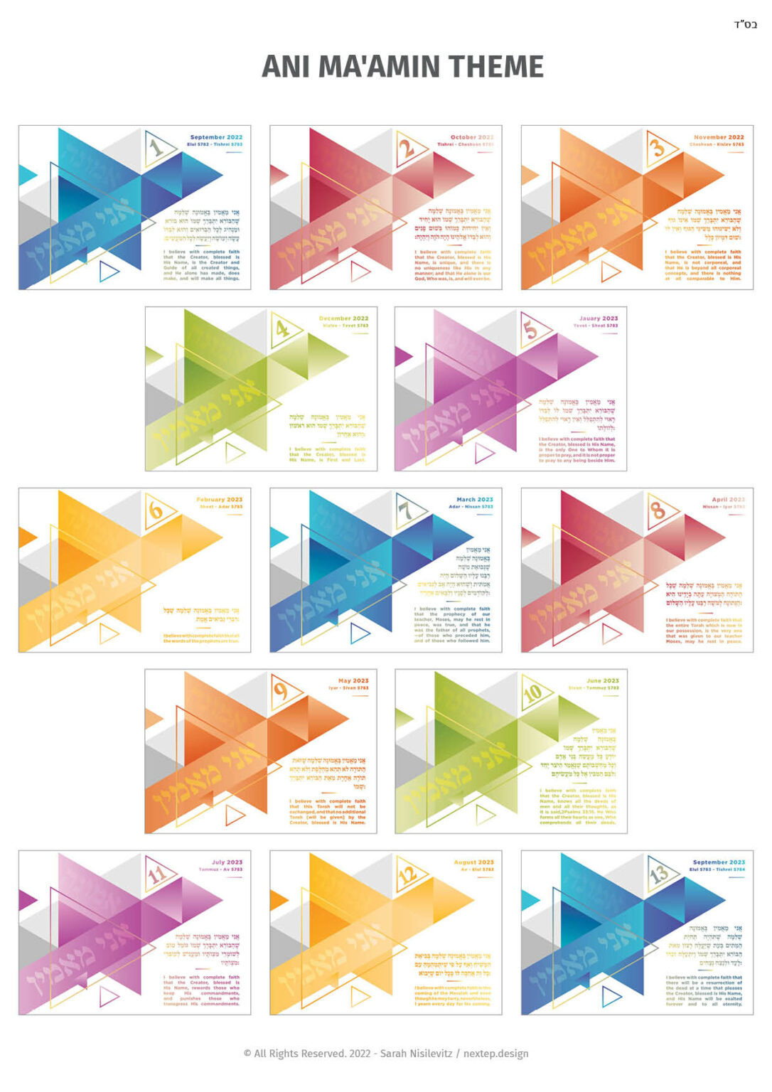 Ani Maamin theme is made of 13 modern design pictures with each Ani Maamin in hebrew and translated in English.