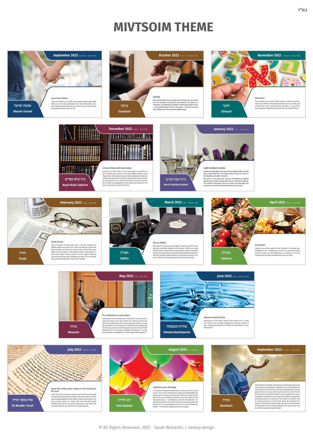 Mivtsoim theme is made of 13 pictures about the mivtsoim,with a matched text in English.